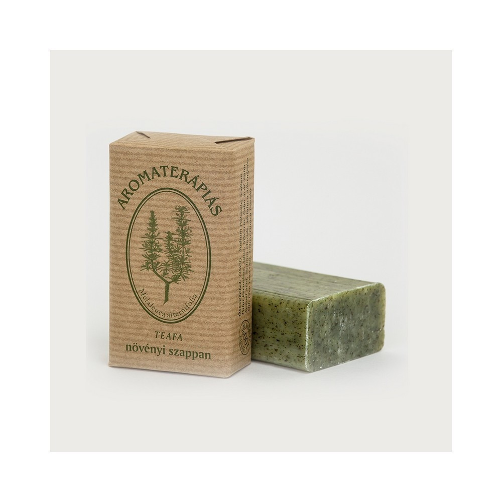 Tea tree soap: coloured with nettle extract. Tea tree essential oil has extremely strong antibacterial and antifungal properties. It cleanses gently and mildly, so it can also be used on the face. Excellent for cleansing acne-prone, eczema-prone skin and skin inflammations.