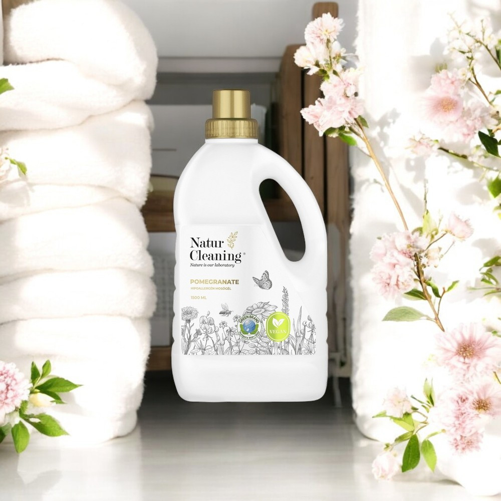 A NaturCleaning Gránátalma Mosógél (1,5 L) a természet gyümölcsös energiáját és a fenntartható tisztaságot ötvözi egy illatos, környezetbarát mosószerben. Ez a vegyszermentes, növényi alapú biotermék gyengéden, de hatékonyan távolítja el a szennyeződéseket, miközben megőrzi a ruhák puhaságát és élénk színeit.