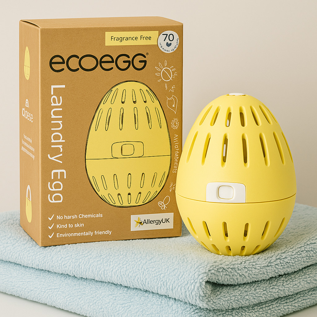 The Ecoegg Laundry Egg is one of the most economical, chemical-free and environmentally friendly laundry options available today. It does NOT irritate the skin and rinses completely out of fabrics, making it highly recommended for children and adults with eczema. The product is supported by Allergy UK and the British Eczema Association. Ecoegg products have not been tested on animals. Available in economical packaging, it is a chemical-free and environmentally friendly washing solution that can cost less than £0.05 (depending on the packaging). It does not irritate the skin and rinses out of fabrics completely, making it highly recommended for children and adults with eczema. Hypoallergenic – does not contain any harmful ingredients (chemicals, petroleum derivatives, optimising additives, bleaching agents). It is ideal for washing both adult and children's clothes. The outer shell of the Ecoegg washing egg is made of 100% recycled, flexible rubber that will not damage your washing machine drum. Available in 2 types: 70/210 mineral and cleaning balls in one box (depending on the package) Available scents: Unscented Spring Flower scent Fresh Cotton scent The 70-wash pack is sufficient for an average family for approximately 4 months, while the 210-wash pack is sufficient for 1 year. The Ecoegg laundry egg contains scientifically developed, patented cleaning balls. There are two types of cleaning balls in the laundry egg: Dark-coloured: a crystalline mineral (tourmaline) that helps remove dirt from textile fibres. White: balls made of a washing soda-based cleaning agent. These ionise the oxygen molecules in the water, allowing them to penetrate the textile fibres and remove dirt from them. Washing takes place without fading or damaging colours. The best washing results are achieved by using both types of balls together, as proven by scientific studies. It is extremely easy to use: place the balls (3 white and 1 grey) in the ecoegg Laundry Egg and place the egg in the drum of your washing machine. The ionised oxygen molecules raise the pH value of the water, which means they have a water softening effect. It can be used effectively even at low temperatures. It can be used for coloured and white clothes as well as 'delicate' fabrics. Use at a maximum temperature of 60 degrees! Do not use for boiling clothes! Washing tips: Do not overfill the washing machine drum so that the laundry egg can move freely during washing. If you want to add fragrance to your laundry, we recommend using laundry perfume. Before using the Ecoegg for the first time, we recommend thoroughly cleaning your washing machine with a 90°C cleaning cycle (+vinegar) or with an Ecoegg Washing Machine Cleaner tablet. Ingredients Sodium C14-16, Olefin, Sulfonate, Sodium Carbonate, Calcium Carbonate, Sodium bicarbonate, Emulsifier, Sodium metasilicate, Sodium citrate, Cellulose gum Safety data sheet
