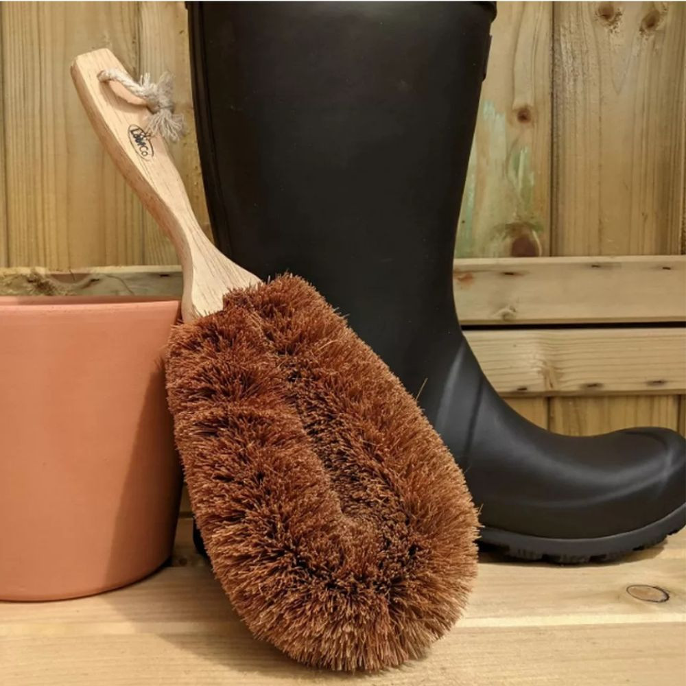 Choose the LoofCo coconut fibre garden brush with handle and keep your garden clean with a sustainable, plastic-free tool!