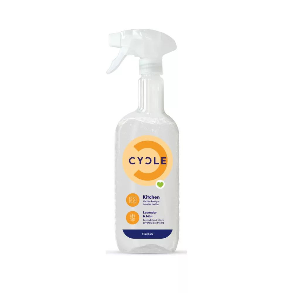 Fedezd fel a CYCLE levendula-menta illatú konyhai tisztítót, amely hatékonyan tisztítja a konyhai felületeket, miközben óvja az egészséged és a környezetet! A „food safe” minősítésű tisztítószer garantáltan biztonságos élelmiszerekkel érintkezve, így bátran használhatod a konyhapulton, asztalokon és egyéb felületeken anélkül, hogy aggódnod kellene a káros vegyi anyagok miatt.