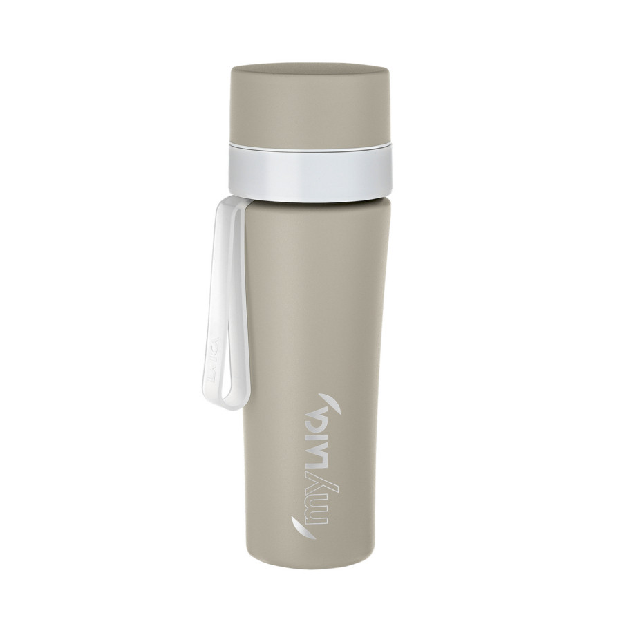 myLAICA vízszűrős kulacs FAST DISK szűrővel, matt bézs színben, rozsdamentes acél, szilikon pánttal, 0,55 liter