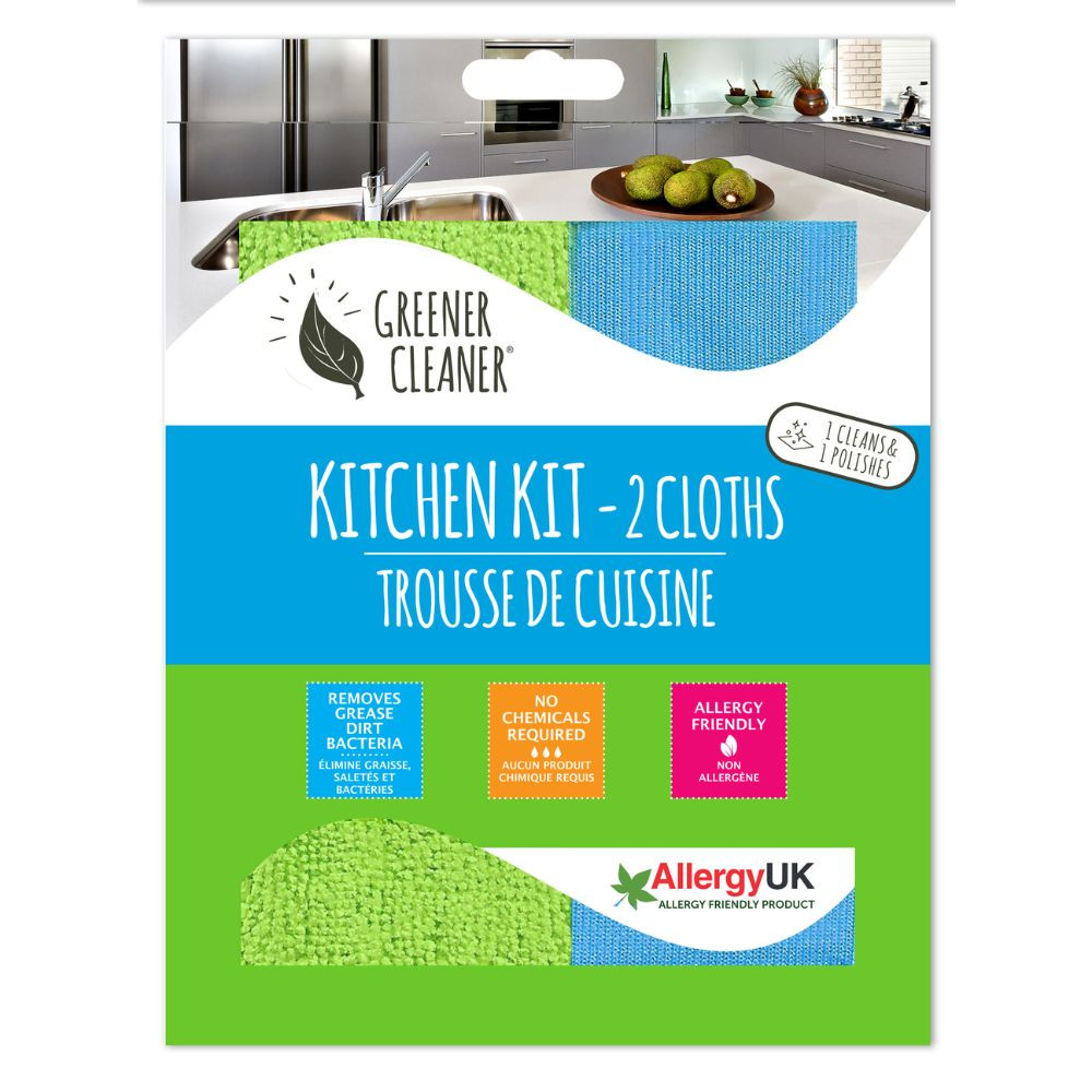 Cleaning cloth (green): When used wet, it effectively cleans kitchen surfaces, removing grease, dirt and bacteria. It can also be used dry to pick up and retain dust.